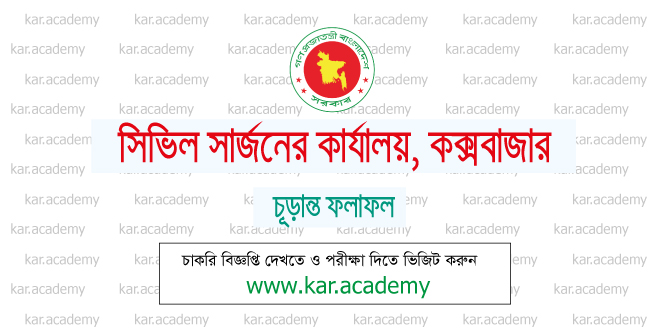 সিভিল সার্জনের কার্যালয়, কক্সবাজার এর সরাসরি নিয়োগযোগ্য ১১-২০ গ্রেডের ০৭ (সাত) ক্যাটাগরির শূন্যপদে জনবল নিয়োগের লক্ষ্যে ২৬/১২/২০২৫ খ্রি. তারিখে অনুষ্ঠিত লিখিত পরীক্ষার ধারাবাহিকতায় অনুষ্ঠিত পরিসংখ্যানবিদ, অফিস সহকারী কাম কম্পিউটার মুদ্রাক্ষরিক ও গাড়ীচালক পদে ২৮/১২/২০২৫ খ্রি. তারিখে অনুষ্ঠিত ব্যবহারিক এবং ০৩/০১/২০২৬ খ্রিঃ তারিখে অনুষ্ঠিত মৌখিক পরীক্ষার ফলাফলের ভিত্তিতে ষ্টোর কীপার, কোল্ড চেইন টেকনিশিয়ান, কীটতত্ত্বীয় টেকনিশিয়ান, পরিসংখ্যানবিদ, অফিস সহকারী কাম কম্পিউটার মুদ্রাক্ষরিক ও ড্রাইভার পদের চূড়ান্ত ফলাফল নিচে উল্লেখ করা হল: